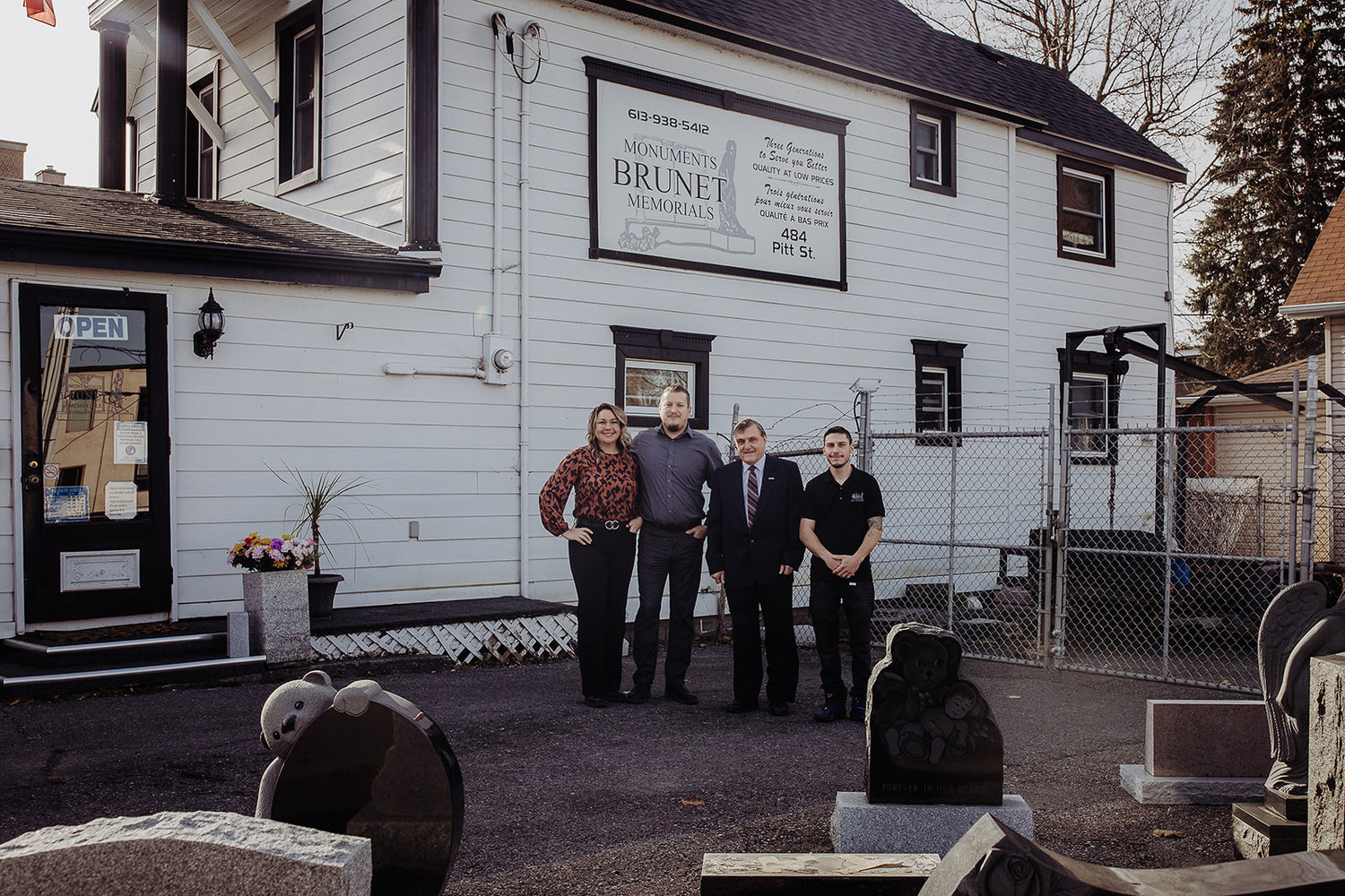 Monuments Brunet Memorials has been a granite memorial reseller since 1985 and is located in the Downtown Business District of Cornwall, Ontario (Fifth & Pitt St).