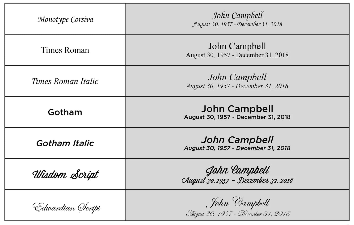 Engraving Options Available